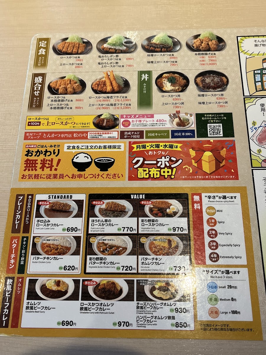 Welcome to Matsunoya - Kiyosu, a culinary gem nestled in the heart of Aichi, Japan. Known for its inviting atmosphere, this eatery specializes in an array of delightful dishes, particularly their katsu curry. The menu offers a fantastic selection, including the much-loved ロースかつカレー大盛 (Large Pork Cutlet Curry), which stands out for its crispy, freshly fried katsu that perfectly complements the rich curry sauce.